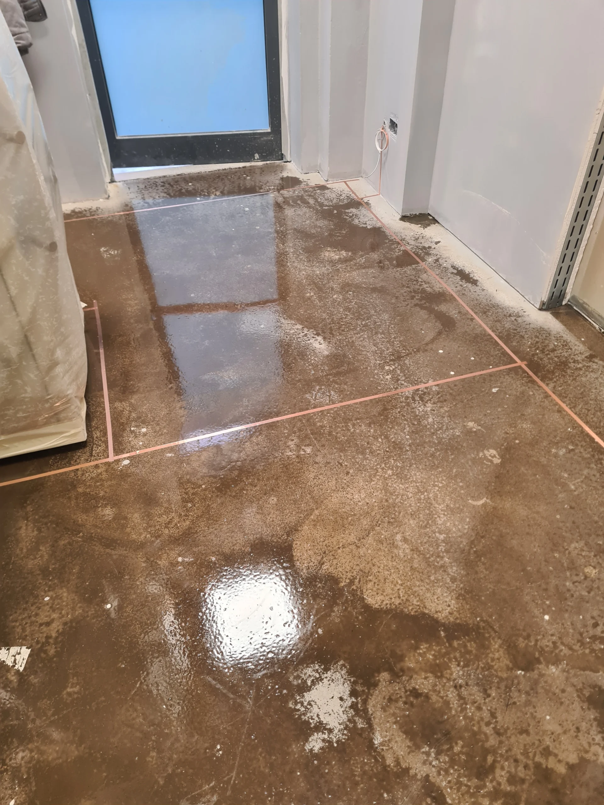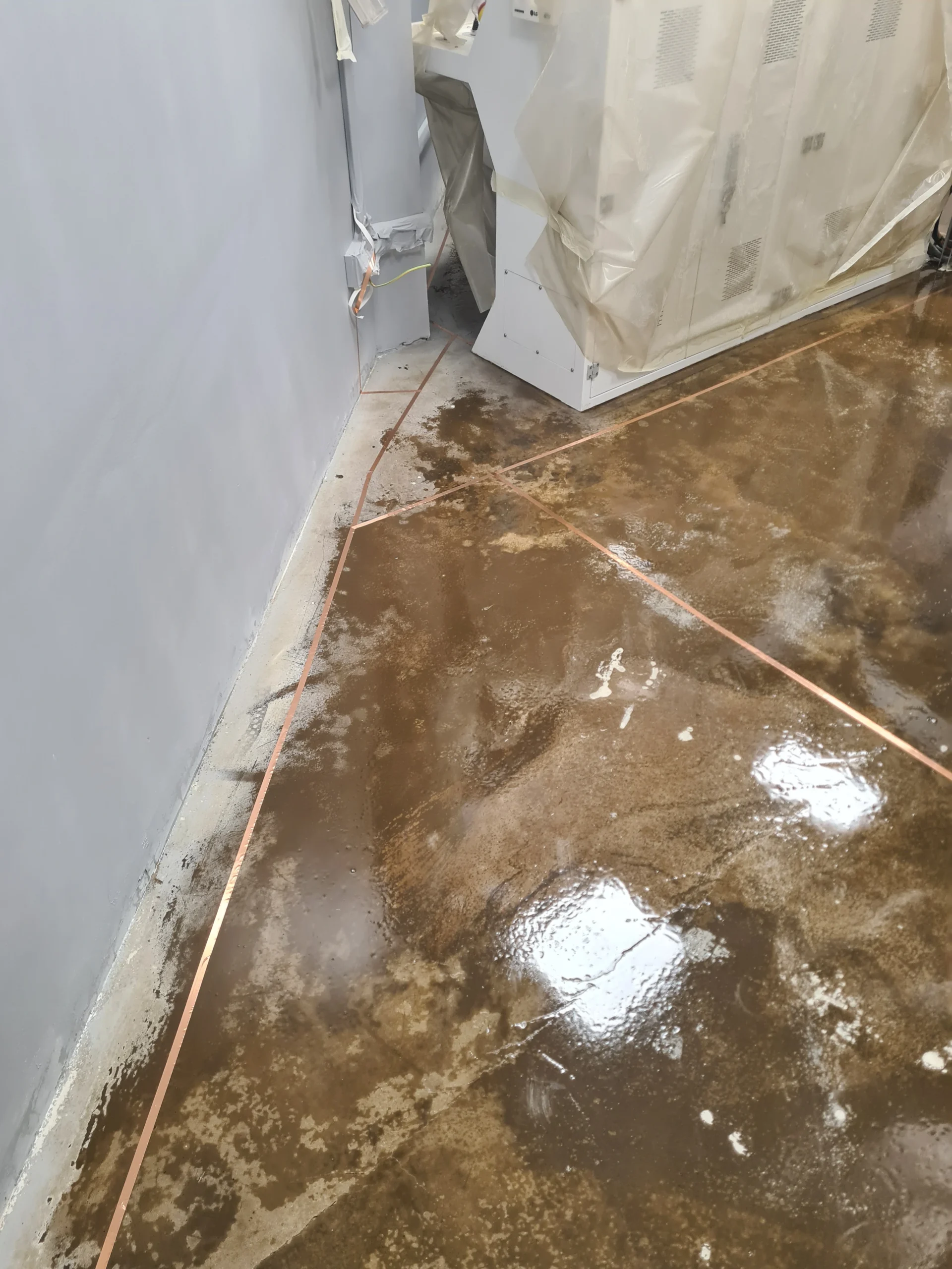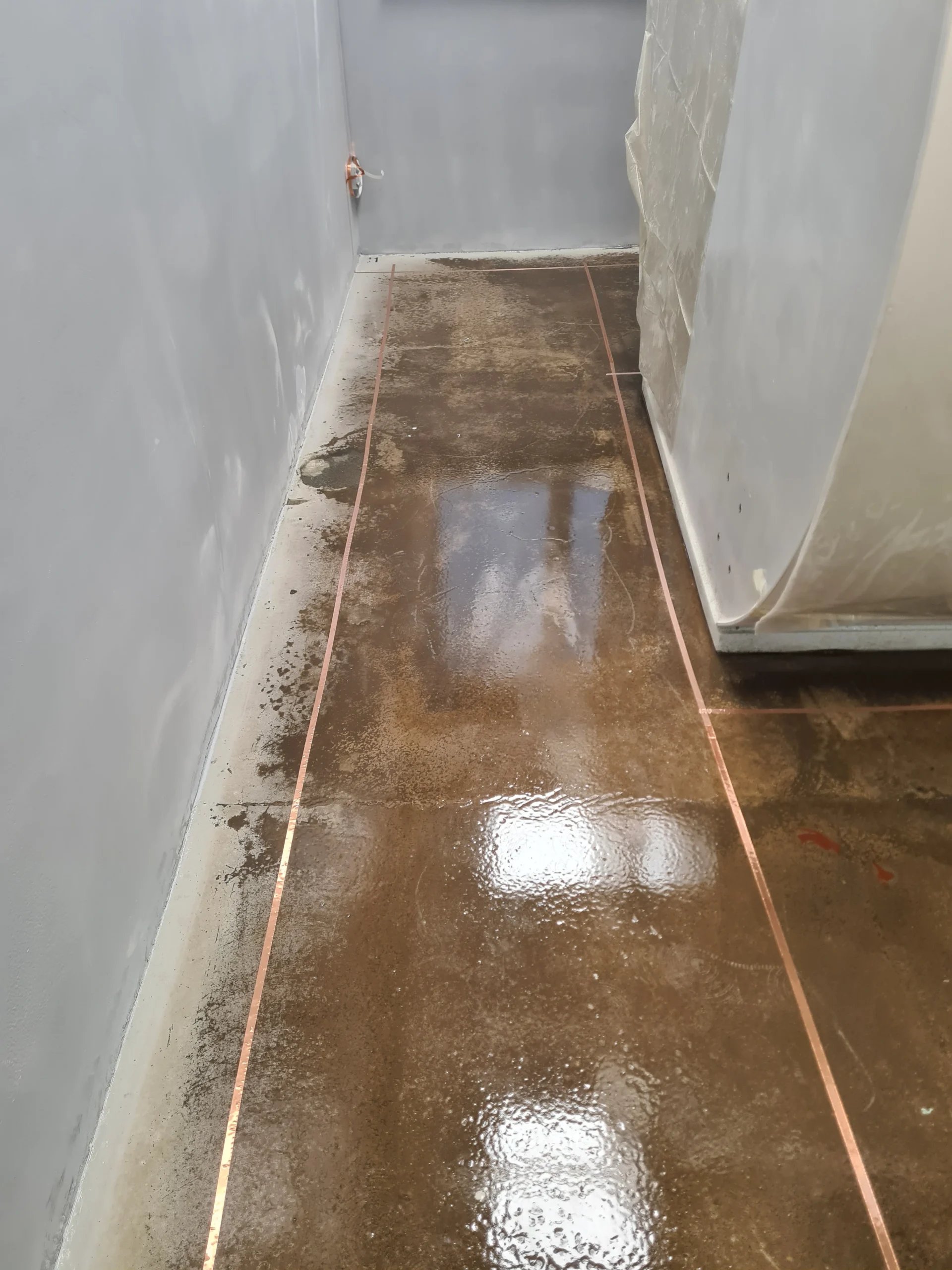 La realizzazione di un pavimento ESD professionale non ammette scorciatoie. In Arteresina costruiamo pavimenti installando una bandella di rame in modo che il pavimento perda la sua capacità di scarico reale.
